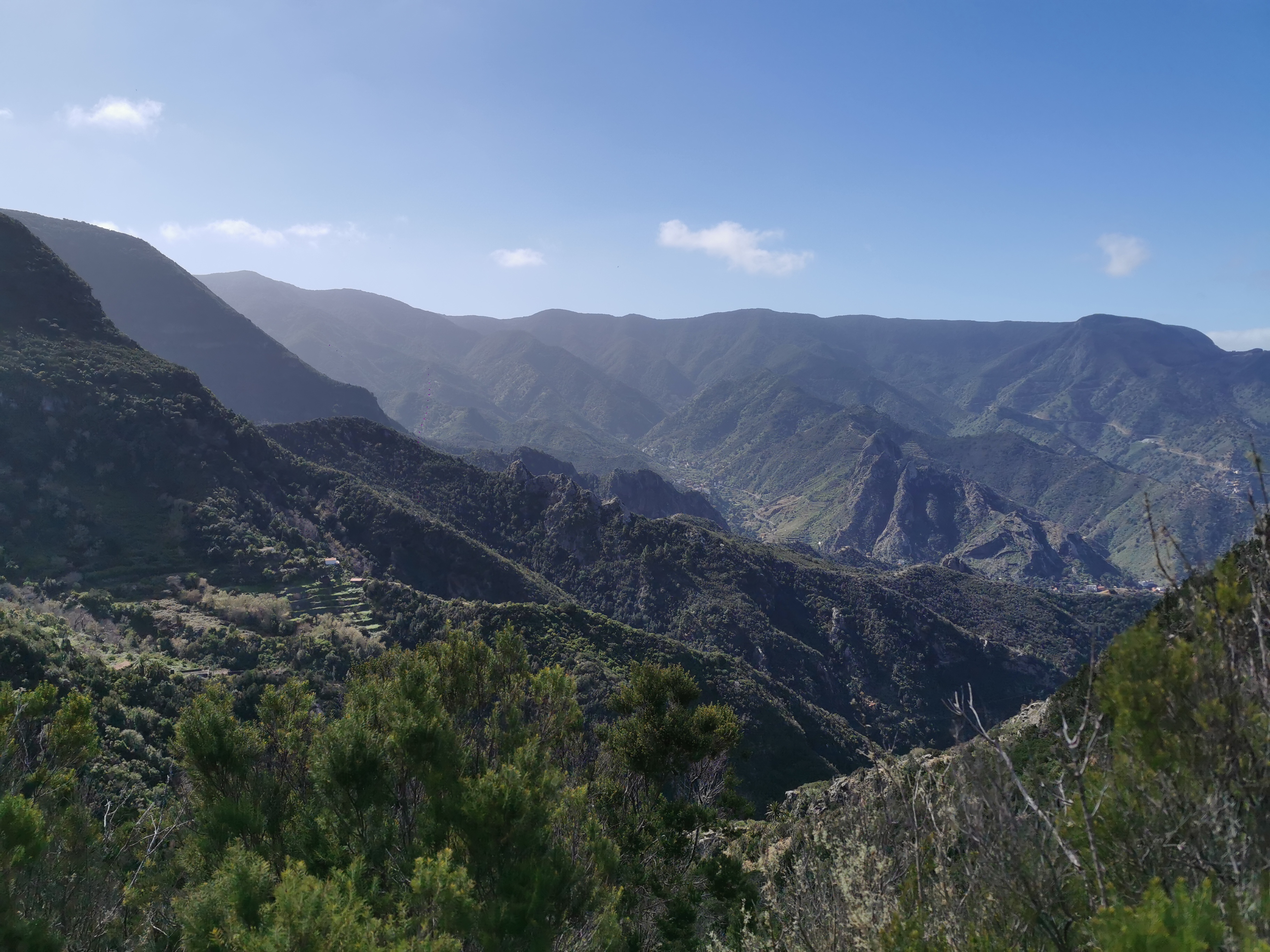 Besides the feelings described above, this day consisted of going up and down along the coast until a final descent towards the capital of La Gomera. The most interesting part of this day were the views towards the human-modified hills surrounding us. Due to its steepness, it’s not possible to directly cultivate on the hills around the island. Therefore, people created these stone-walled terraces to maximize, cultivate, and irrigate land for crops on rugged terrain. They dramatically impact the landscape. Moreover, some of them were quite far from roads, so I got myself often thinking about how difficult, demanding and time consuming it must have been to create such terraces.
