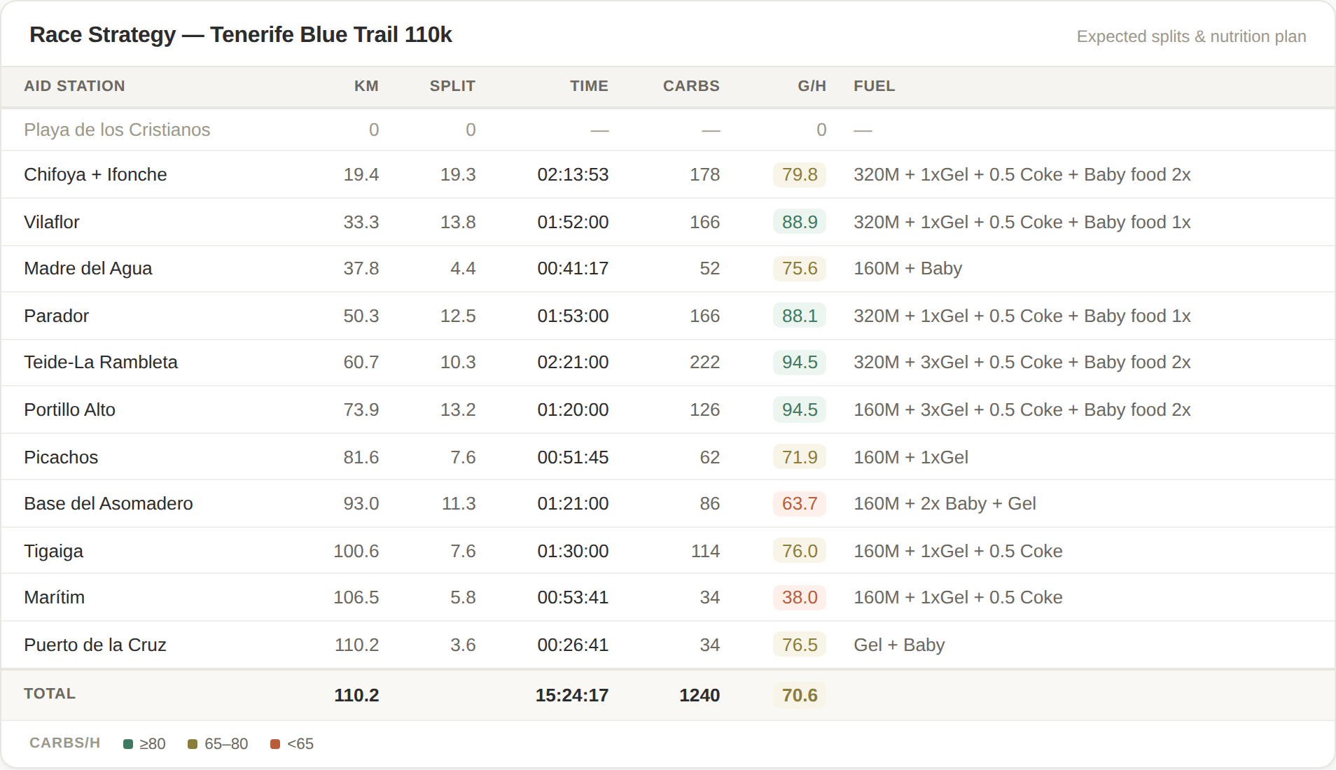In this section I want to share my approach to the race with respect to nutrition and pace. Keep in mind that the race was cancelled, so everything I am sharing here is purely hypothetical and based on my previous training times done on the race course.